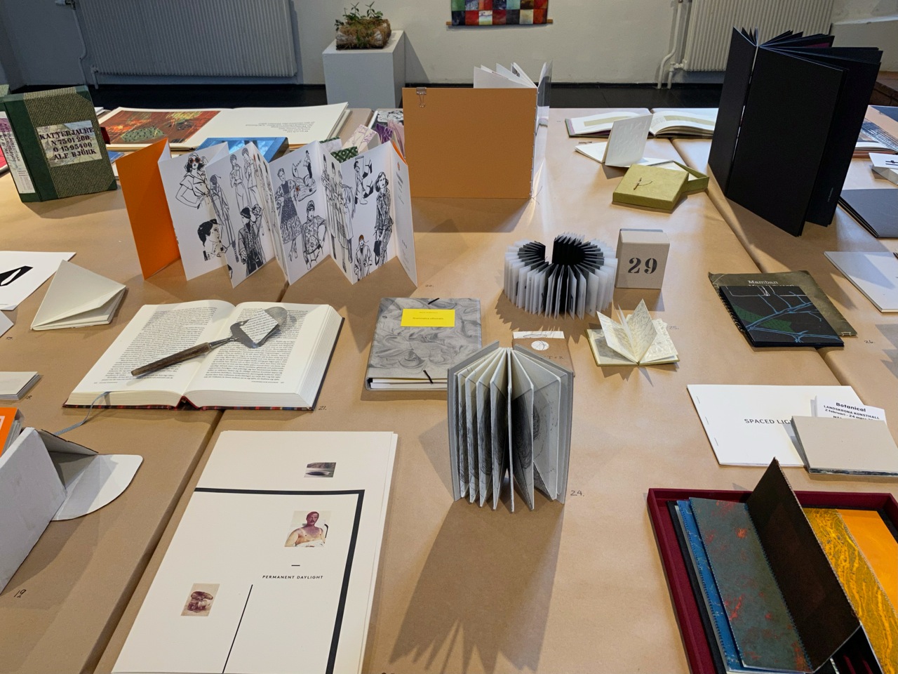 Vi börjar med en Drum Leaf binding där varje uppslag i boken öppnas plant, perfekt för grafik, foto, teckningar mm. En relativt enkel bindning som kan göras liten eller stor och som ser avancerad ut.